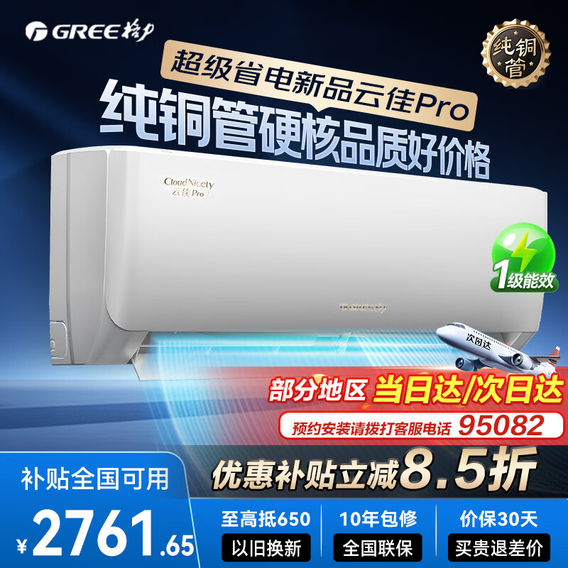 格力【国家补贴】空调云佳Pro 新品上市一级能效变频冷暖自清洁壁挂式卧室空调挂机以旧换新 云佳Pro 冷酷外机 1.5匹 一级能效 新款上市