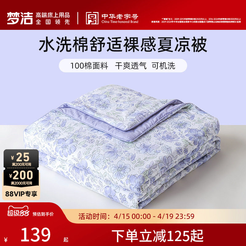 梦洁家纺纯棉全棉夏凉被空调被夏季被芯可机洗夏天双人薄款被子