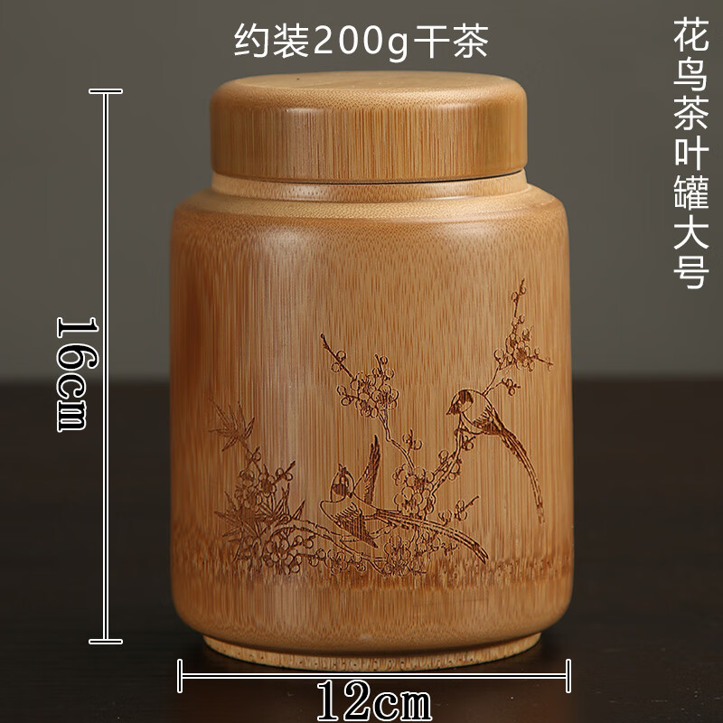佐普森便携竹茶叶罐 密封竹筒小号储茶叶盒竹木醒茶叶桶大号包装竹杯 大号刻鸟茶叶罐
