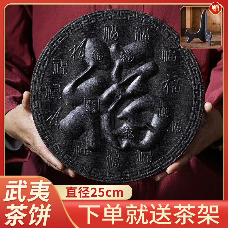 武夷山正宗大红袍茶叶茶饼摆件乌龙茶浓香茶叶茶雕珍藏工艺品 福字茶饼+茶架