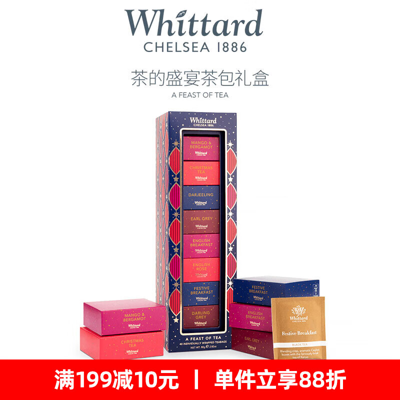 唯廷德(Whittard)节日限定茶的盛宴独立茶包礼盒袋泡茶红茶绿茶叶节日礼物英国进口