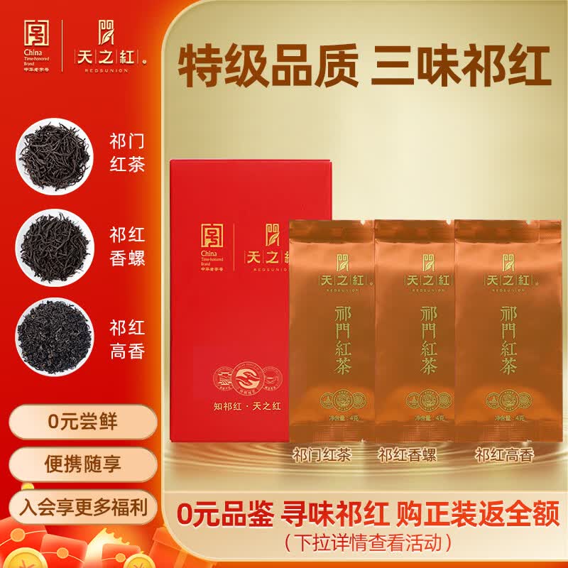 天之红 祁门红茶茶叶特级自己喝的 三大祁红品鉴装12g