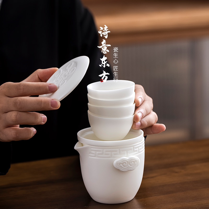 羊脂玉白瓷旅行茶具车载露营功夫茶具便携一壶四杯茶叶罐高端定制