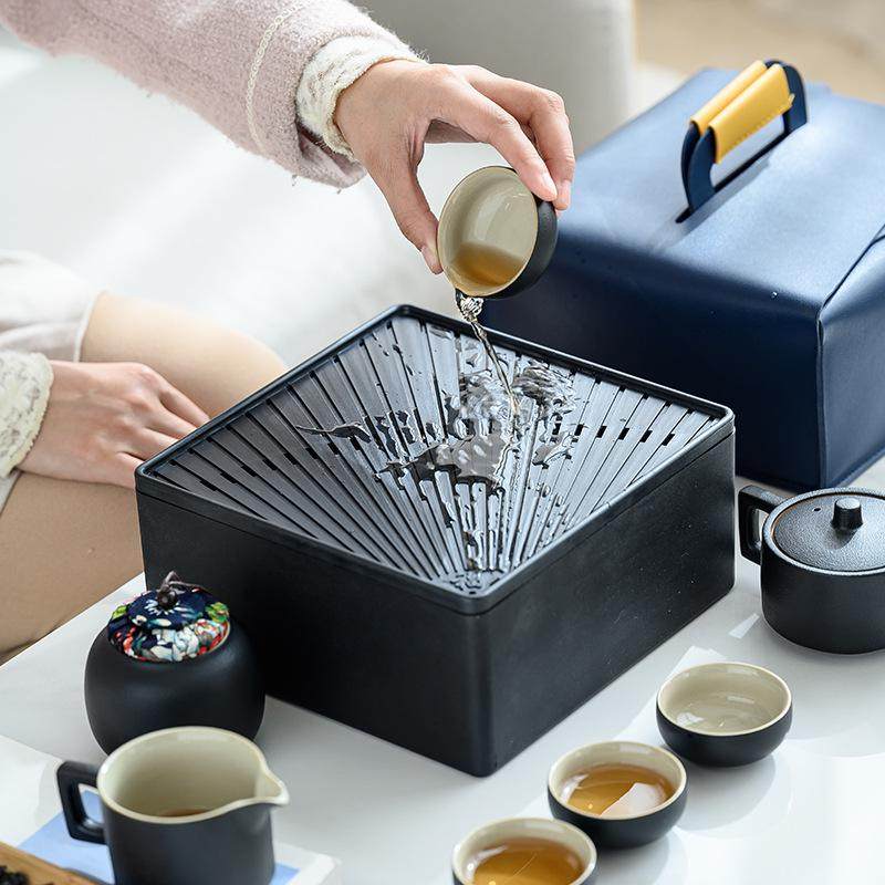 中式简约旅行茶具黑陶茶叶罐壶茶杯过滤整套茶盘便携皮包礼品定制