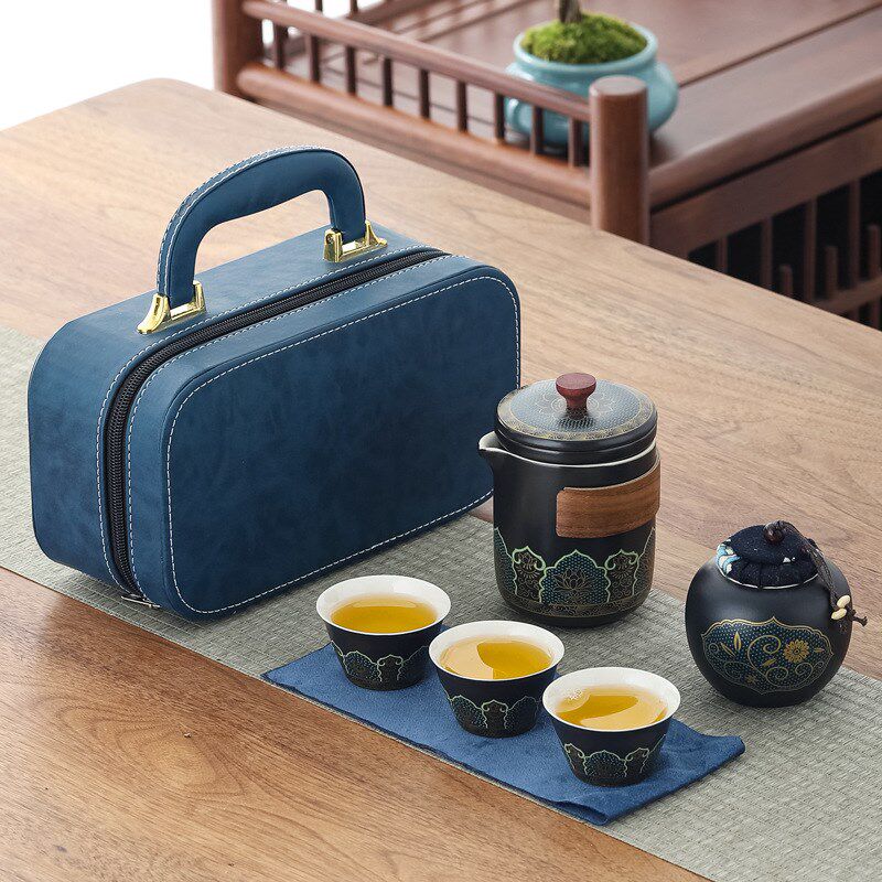 旅行茶具套装全套车载国潮户外便携茶具茶叶罐陶瓷壶公司商务礼品