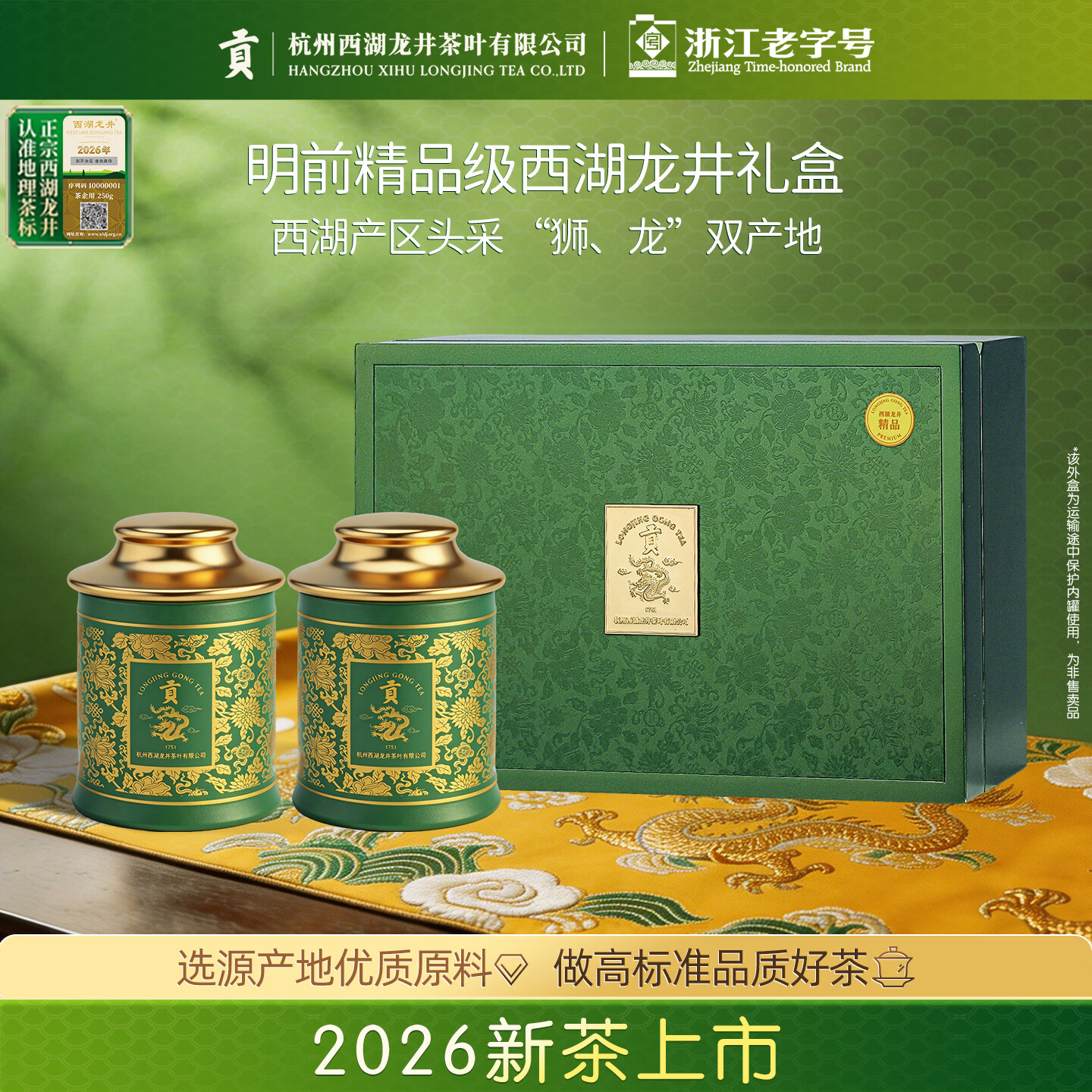贡牌2026新茶上市 绿茶西湖龙井茶精品级100g明前礼盒装