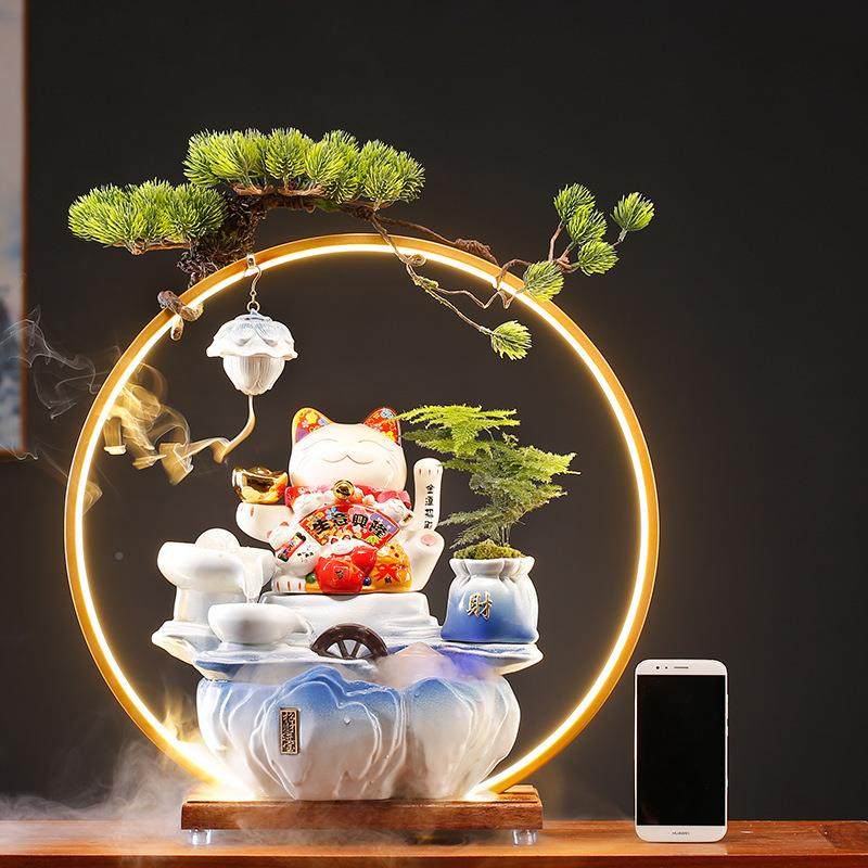 开新中式招财流水摆循环水茶叶店奢前台收银件台装饰EZF轻高档业