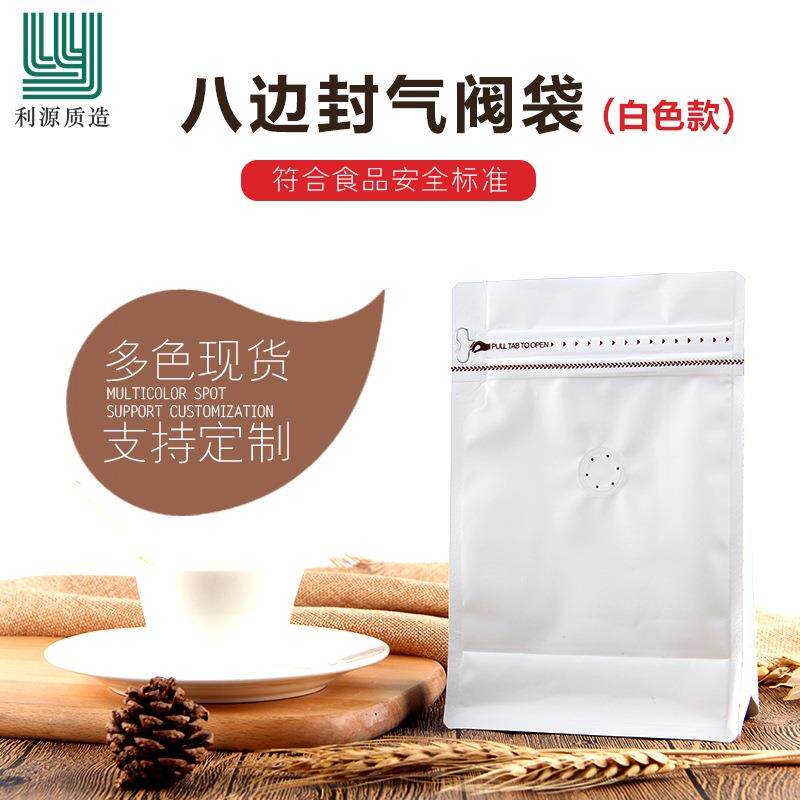 源咖链装啡包装袋白色八边封铝箔袋单向气利阀侧拉QKO茶叶咖啡豆