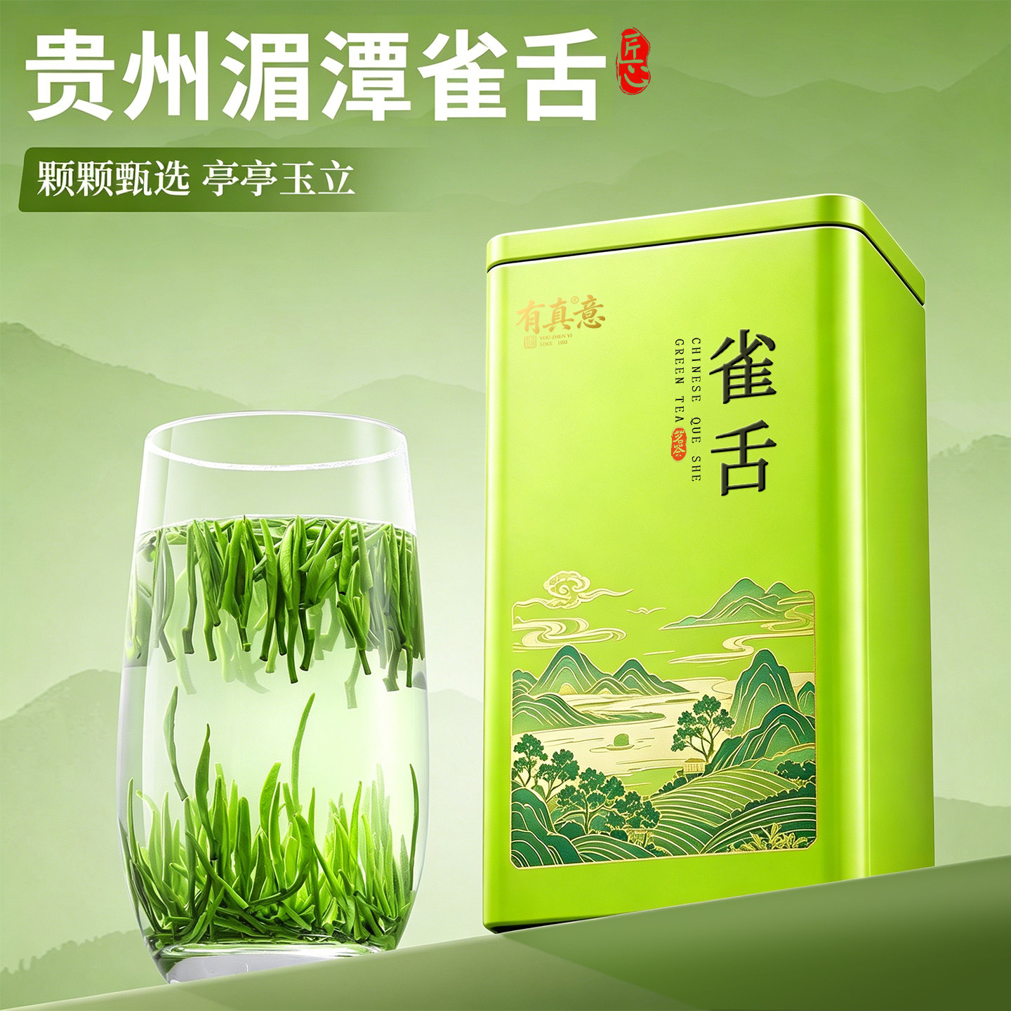 有真意雀舌新春茶叶湄潭雀舌绿茶贵州明前头采嫩芽单芽浓香罐装