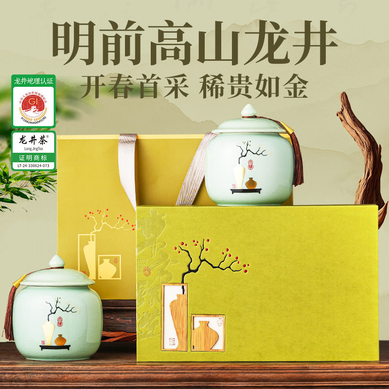 特级明前龙井茶礼盒装2026新茶茶叶绿茶陶瓷罐礼品送人送长辈包邮