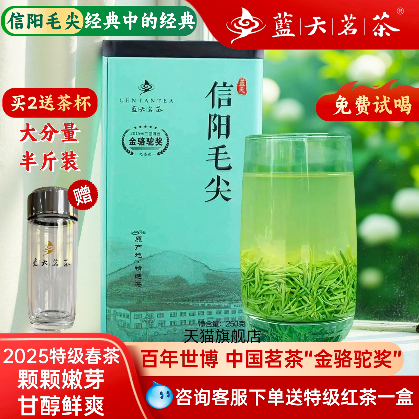 蓝天茗茶2025春茶信阳毛尖绿茶雨前特级茶叶绿茶芽叶浓香罐装250g