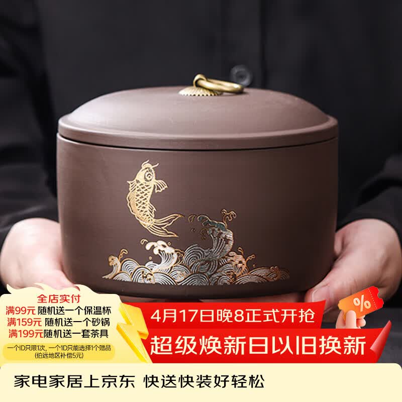 宅轻松紫砂茶叶罐白茶红茶普洱茶罐茶具配件家用办公茶叶密封罐年年有余