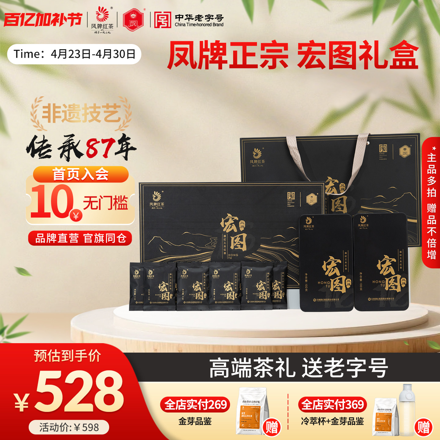 凤牌红茶宏图滇红工夫礼盒正宗云南凤庆特级茶叶节日送礼长辈