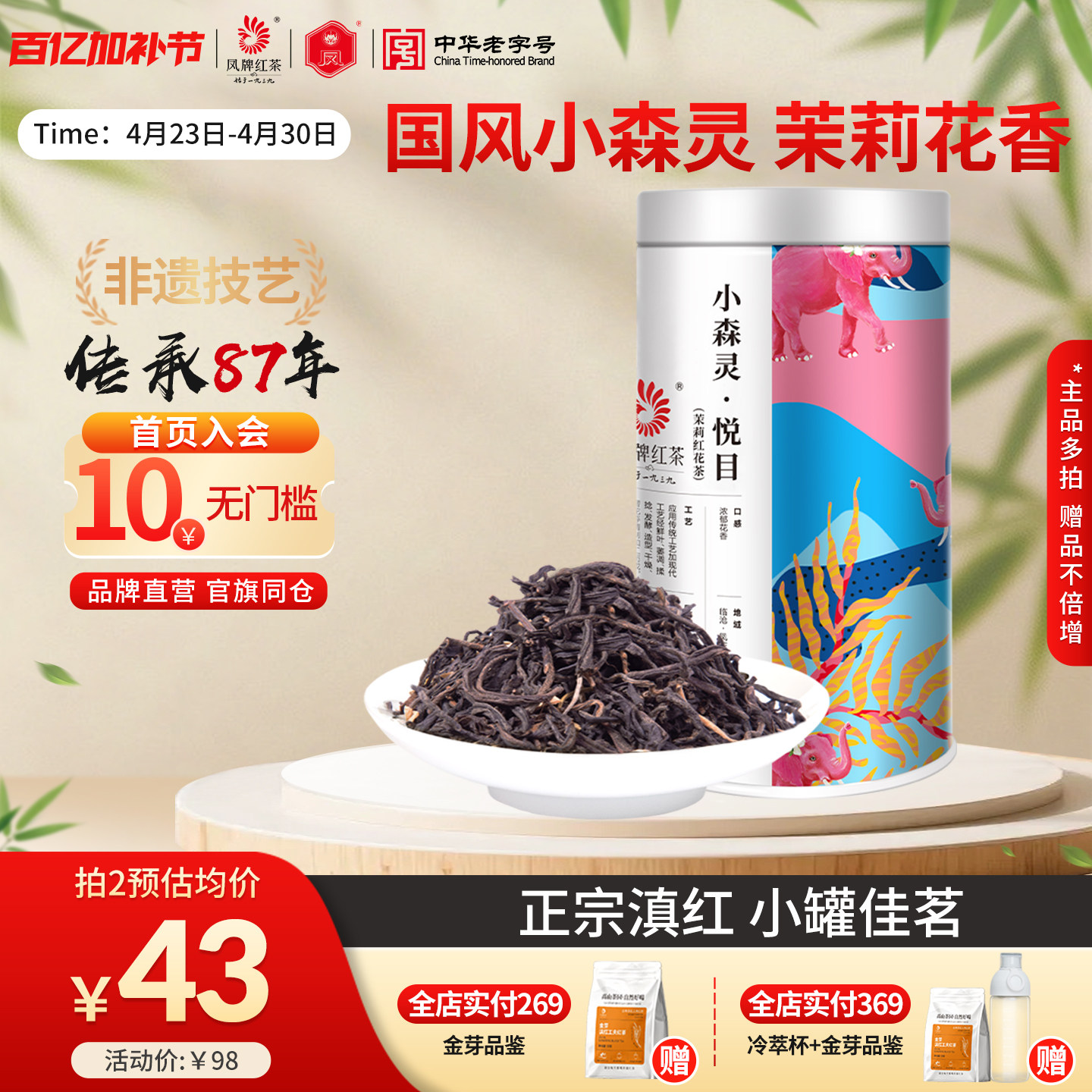 凤牌红茶正宗云南凤庆浓香滇红茶茉莉红茶花果香花茶优惠套餐125g