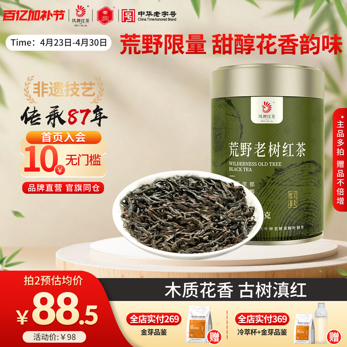 【新品】凤牌红茶云南滇红高山荒野老树100g甜醇花香特级散装茶叶