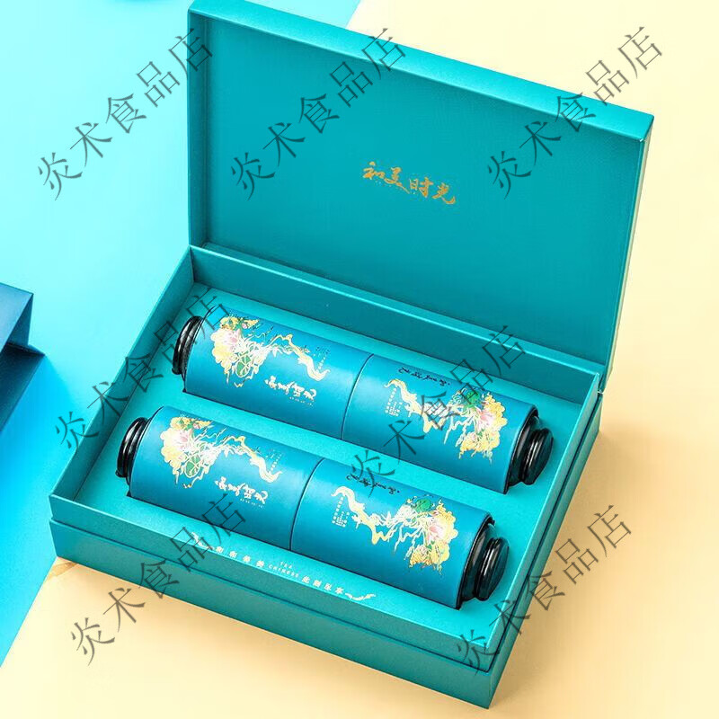 茶叶礼盒装空盒一斤半斤装红绿茶岩茶铁观音茶叶纸罐装空礼盒定制 和美时光(4罐)蓝色 无茶叶