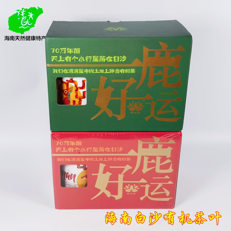 日照绿茶茶叶特级海南白沙陨坑茶有机绿茶50g红茶礼盒装一鹿好运