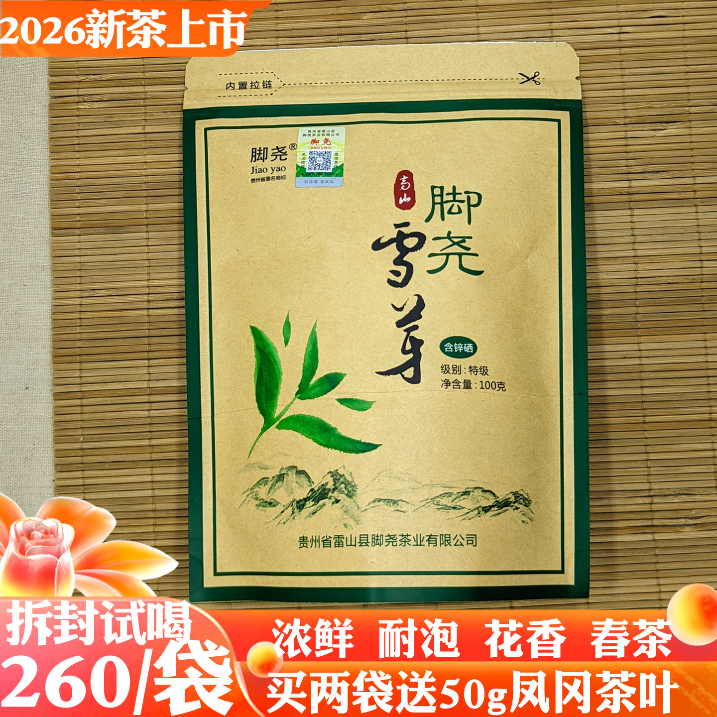 贵州雷山脚尧雪芽茶2026年明前特级清明茶含硒绿茶礼盒装送礼100g