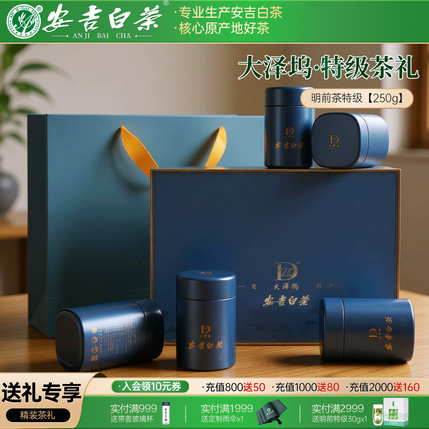 2026新茶大泽坞安吉白茶明前特级250g节日礼盒浙江安吉高山绿茶叶