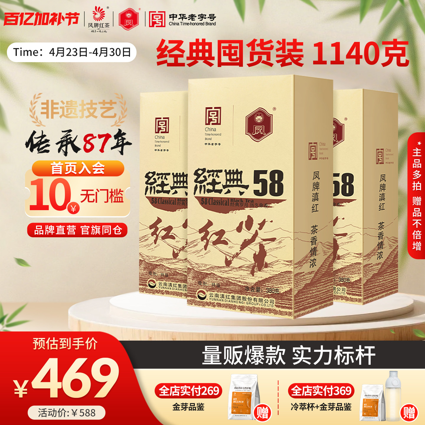 【量贩组合】凤牌红茶正宗经典58茶叶云南凤庆滇红特级浓香380g*3