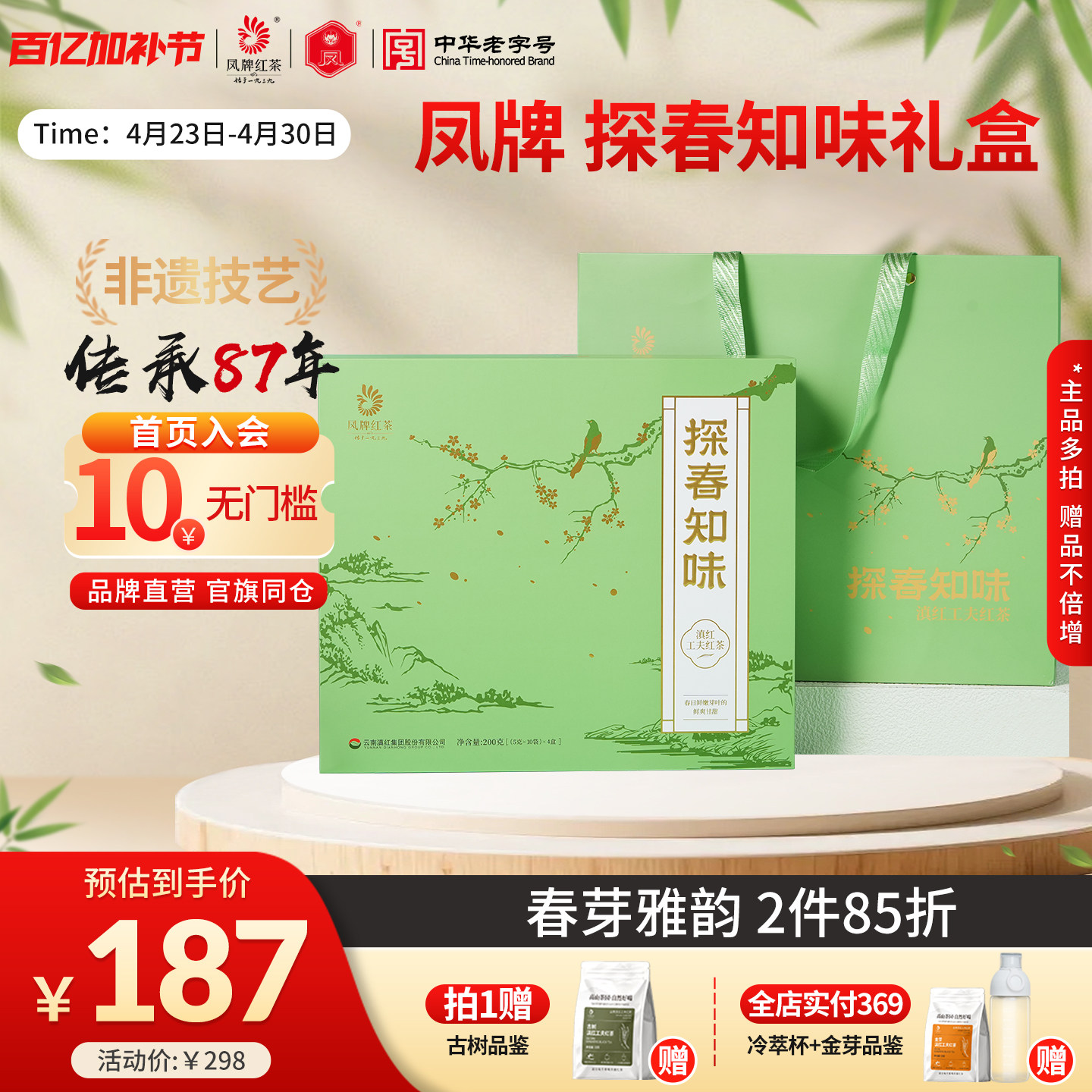 凤牌红茶礼盒探春知味早春茶叶礼盒200g正宗滇红茶节日送礼长辈
