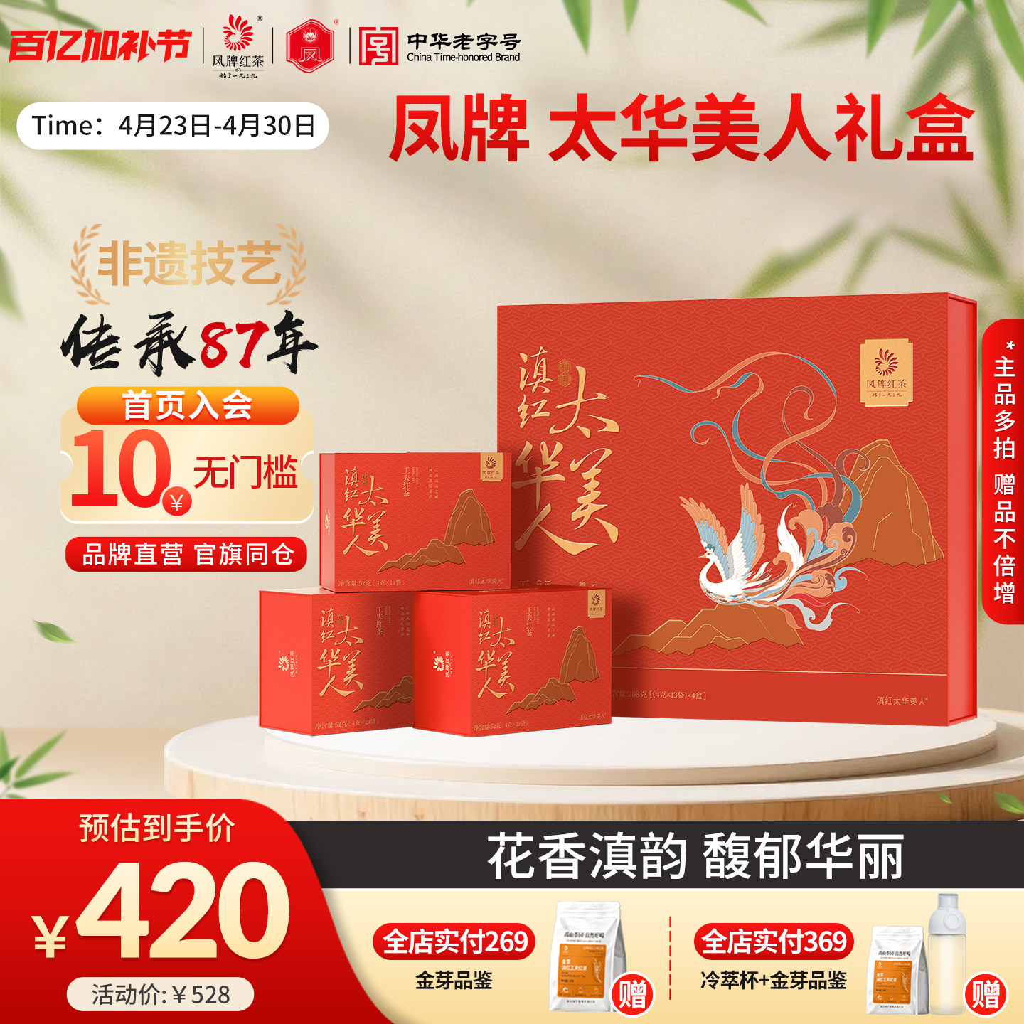 【新品】凤牌红茶正宗滇红礼盒太华美人特级云南茶叶208g节日送礼