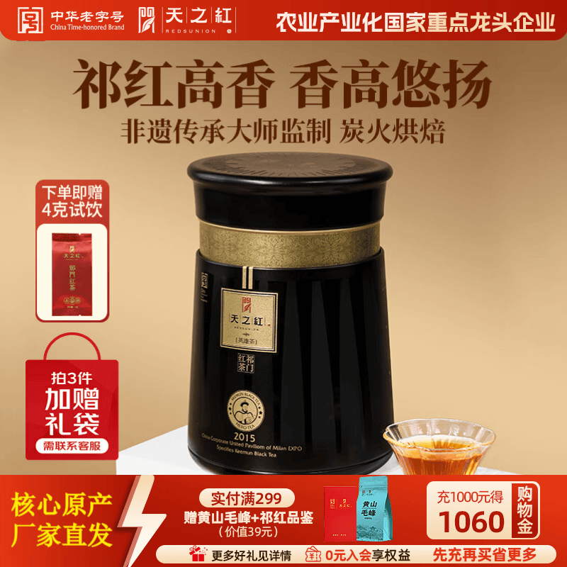 天之红 祁门红茶祁红高香茶叶特一级英雄茶 自己喝的茶叶节日元宵送礼 【焕新升级】世博纪念·鸿韵罐装168g
