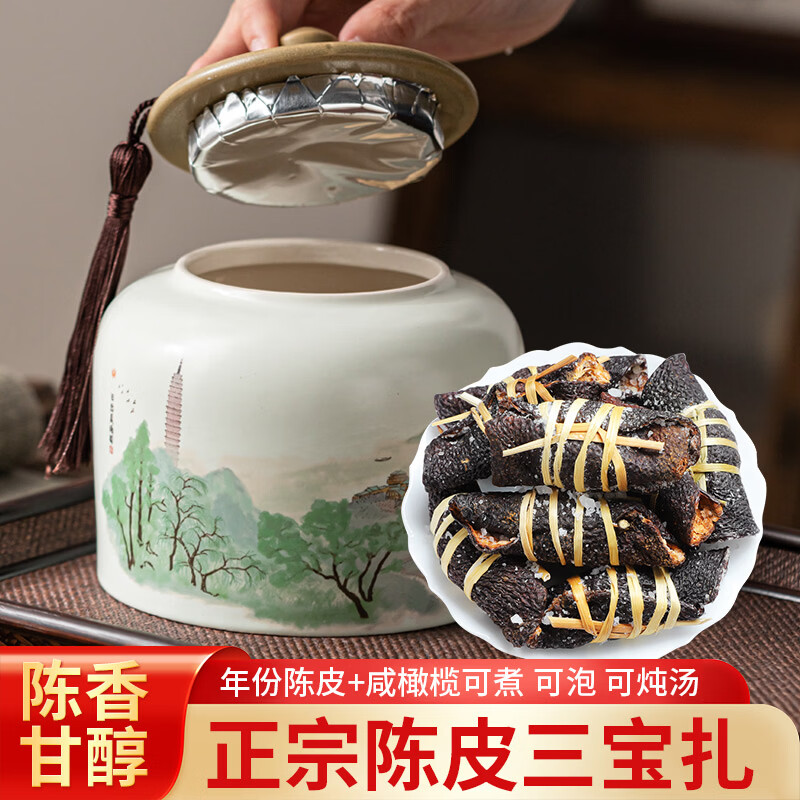 宝然老陈皮咸榄茶三宝扎泡水陈皮干广东三宝特产手工传统腌制 陈皮三宝扎 250g*1罐