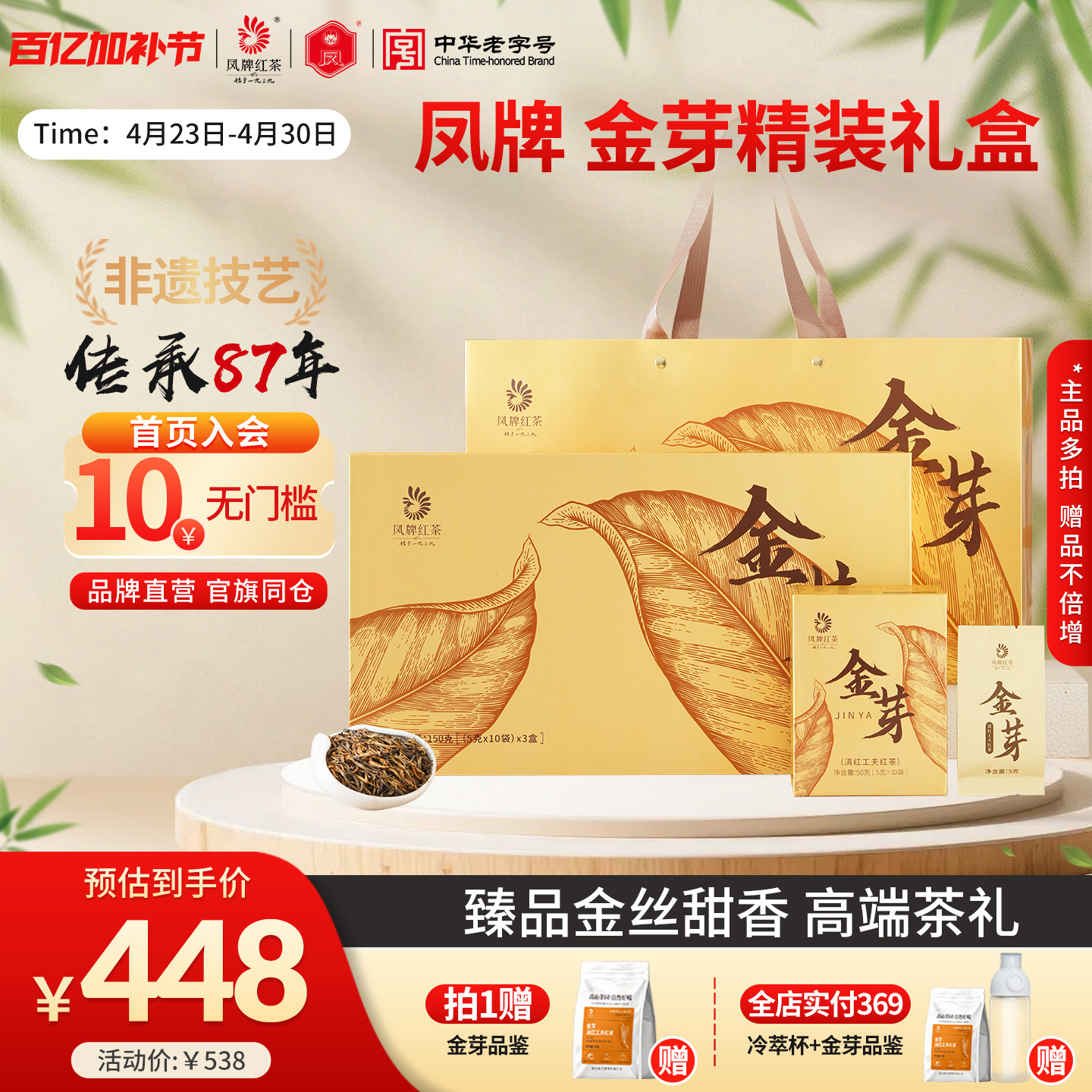 凤牌红茶正宗云南滇红金芽茶高档礼盒装特级茶叶150g节日送礼长辈