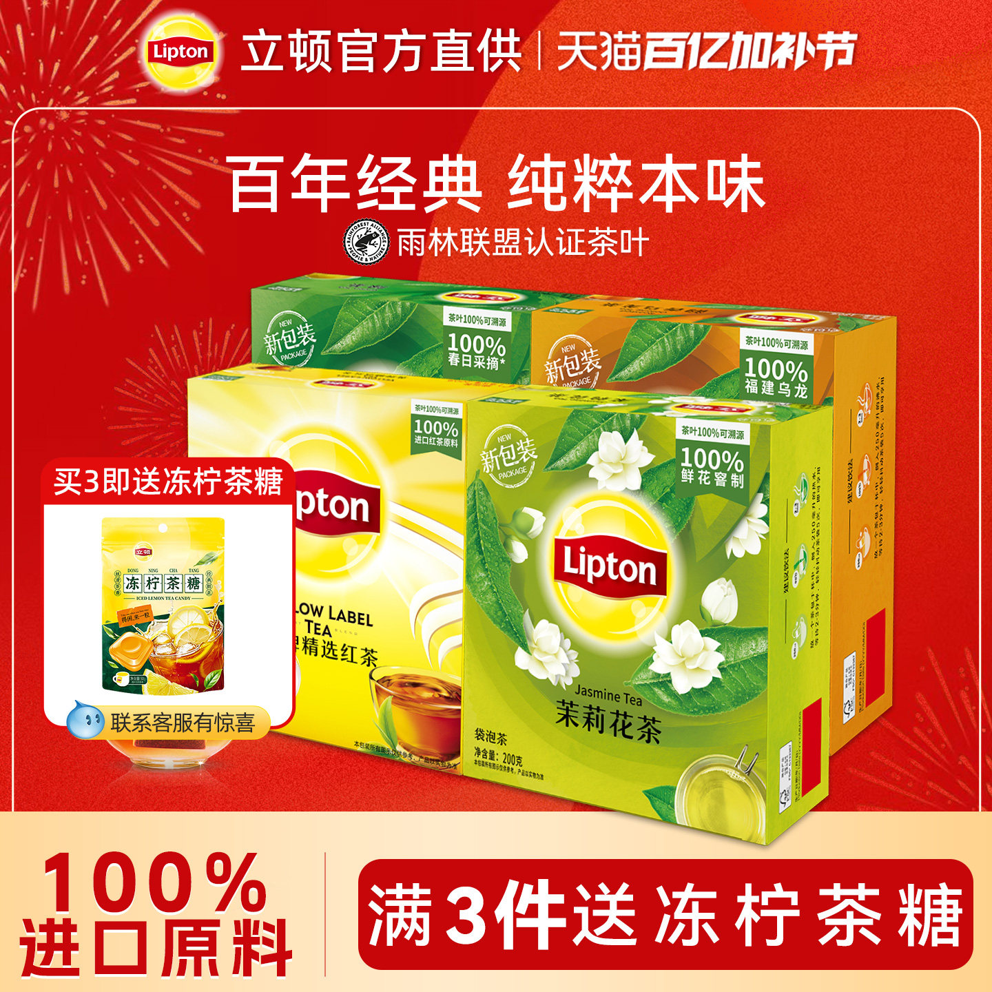 立顿2026新红茶叶包茉莉花乌龙绿茶冷泡浓香型馅料官方旗舰店正品