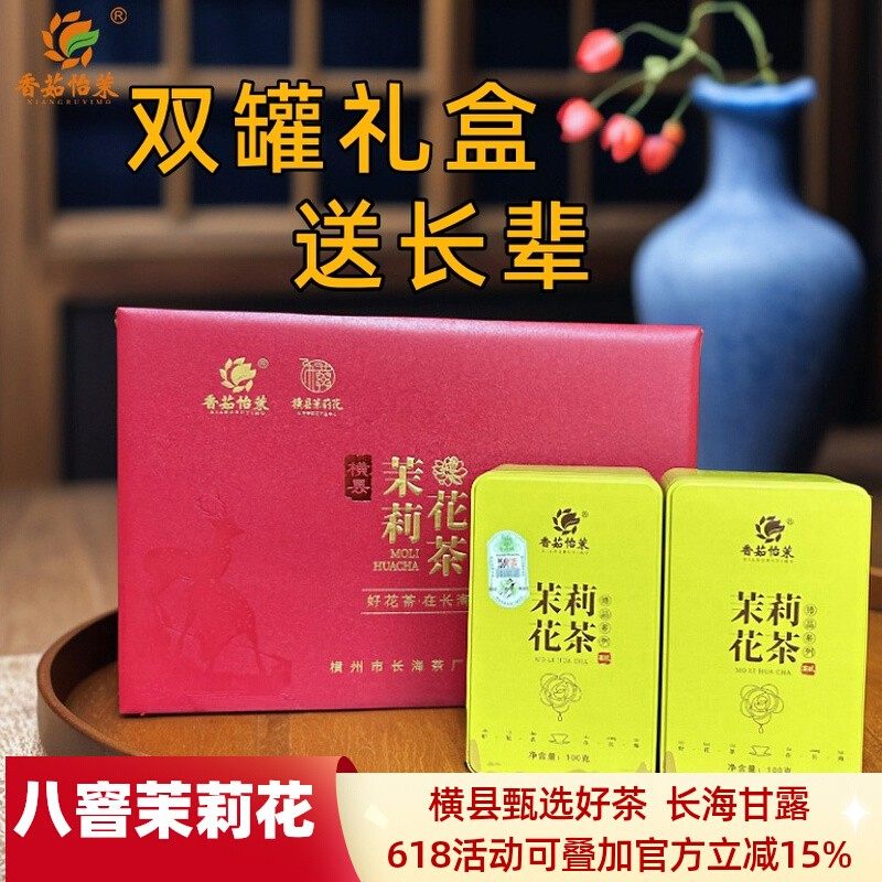 八窨新茶横县茉莉花茶浓香型长海甘露特级200g茉莉绿茶礼盒送长辈