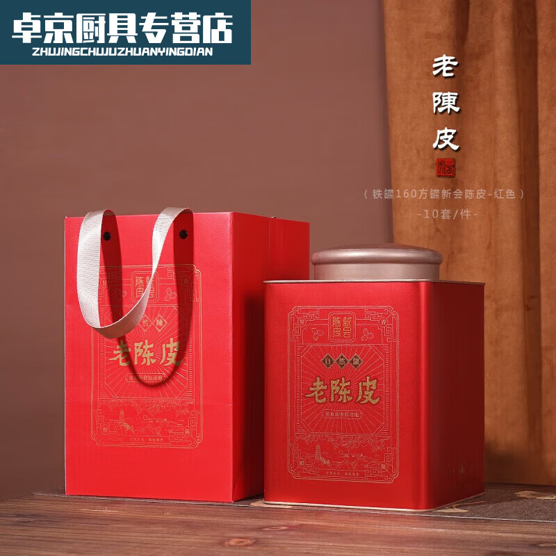 HL新会陈皮包装空礼盒铁罐陈皮罐密封储存罐茶叶罐伴手礼盒 红色配袋