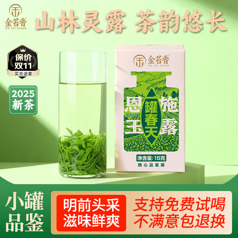金苔香恩施玉露绿茶2025新茶叶湖北恩施特产高山硒茶明前春茶送礼送长辈 福利精致小罐尝鲜锁鲜明前头采恩施玉露15g