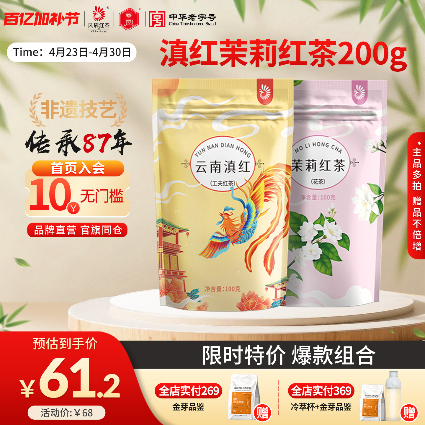 【爆款组合】凤牌红茶正宗滇红茶+茉莉花香红茶云南凤庆茶叶200g