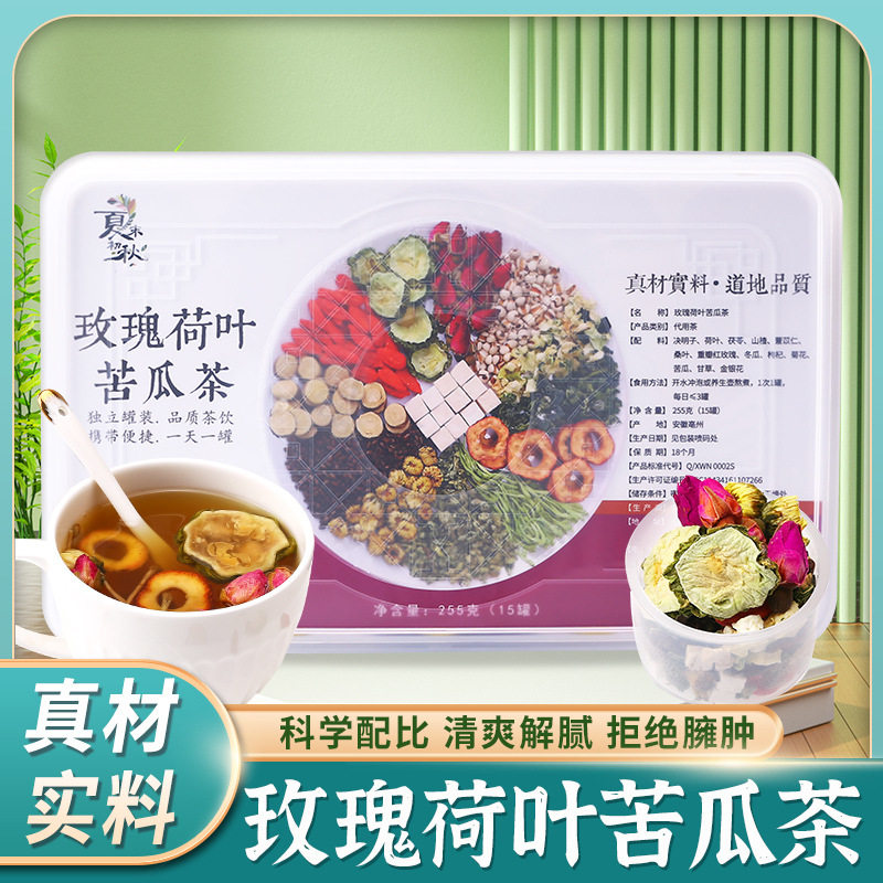 玫瑰荷叶苦瓜茶255g/盒15小罐脂流养生茶叶组合花草茶