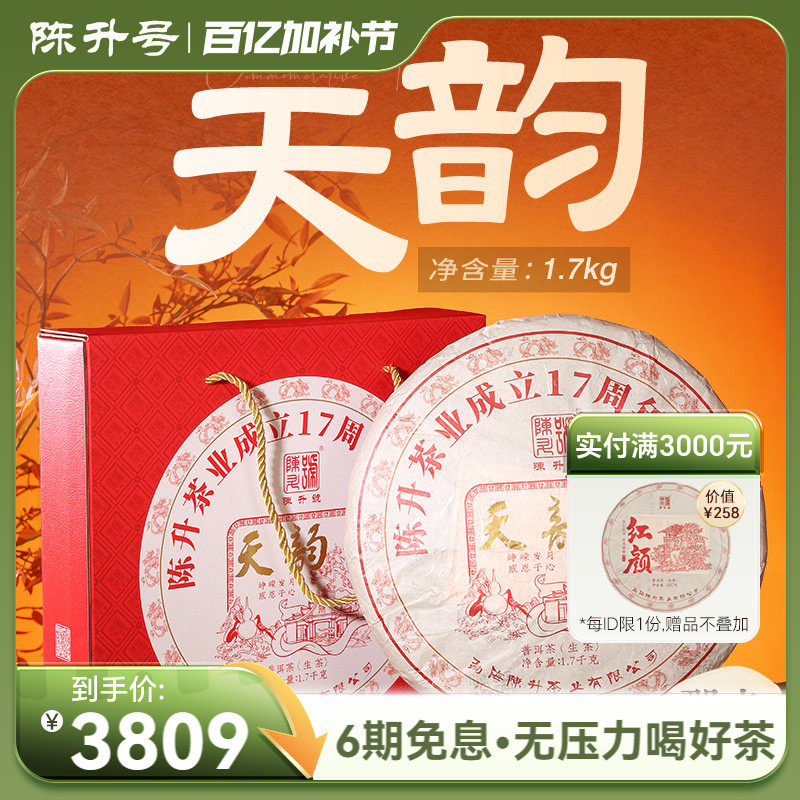 【十七周年纪念饼 】2024陈升号普洱茶天韵1.7kg普洱生茶礼盒茶叶