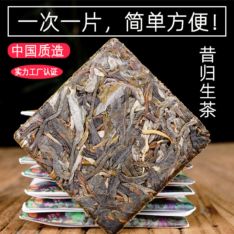 云南域邦普洱茶昔归生茶薄片古树生饼普尔小方砖晋洱茶叶散装200g