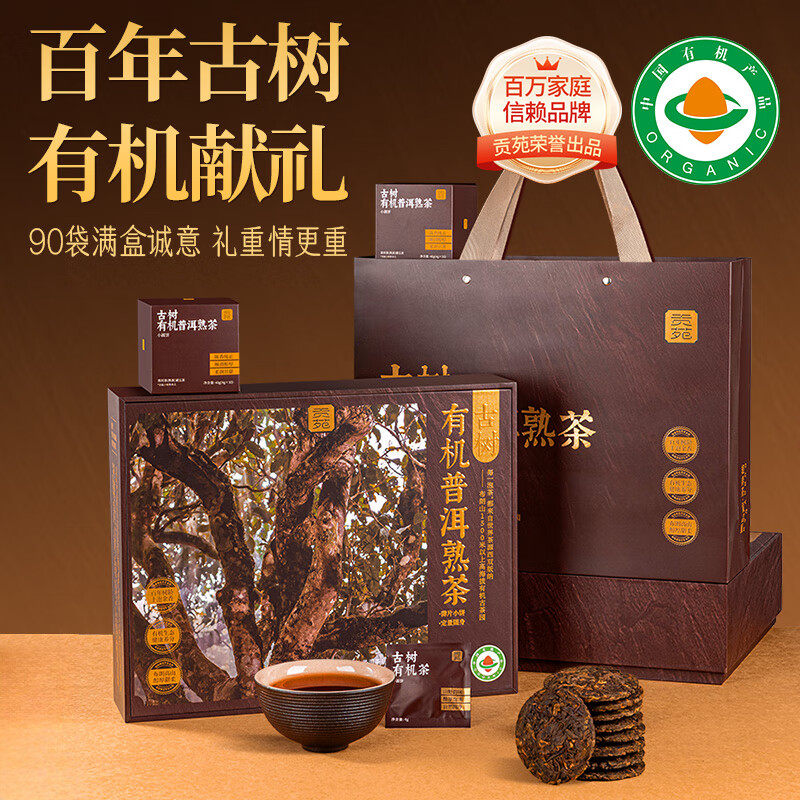 贡苑有机普洱熟茶特级古树360g高档茶叶饮品礼盒装送节日礼品长辈