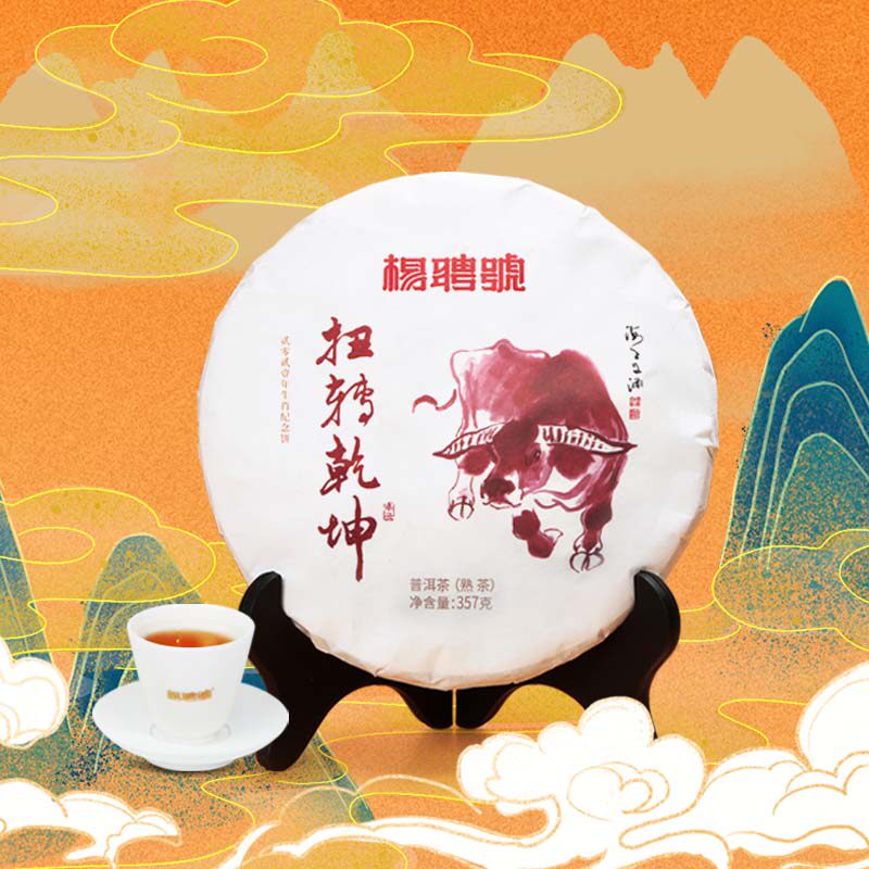 杨聘号扭转乾坤 2021牛年生肖纪念饼云南七子饼茶普洱茶熟茶357g