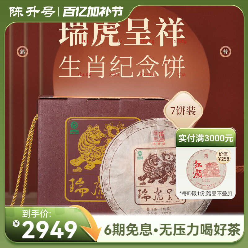 【整提7饼】2022年陈升号虎饼生肖普洱茶熟茶云南勐海熟茶饼茶叶