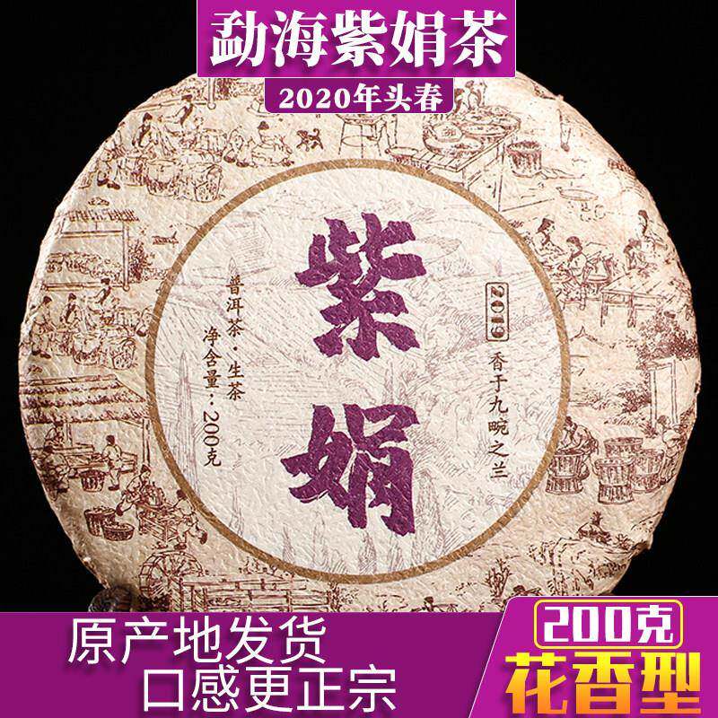 云南勐海紫娟茶普洱茶生茶饼茶正宗原产地浓香型黑紫鹃茶叶200g