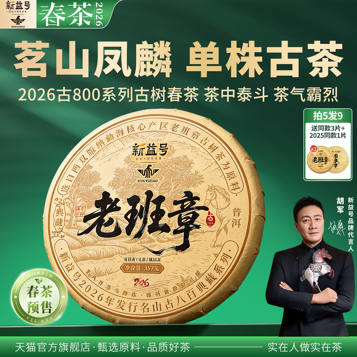 拍5发8送南糯山新益号古800老班章单株古树云南七子饼普洱生茶叶
