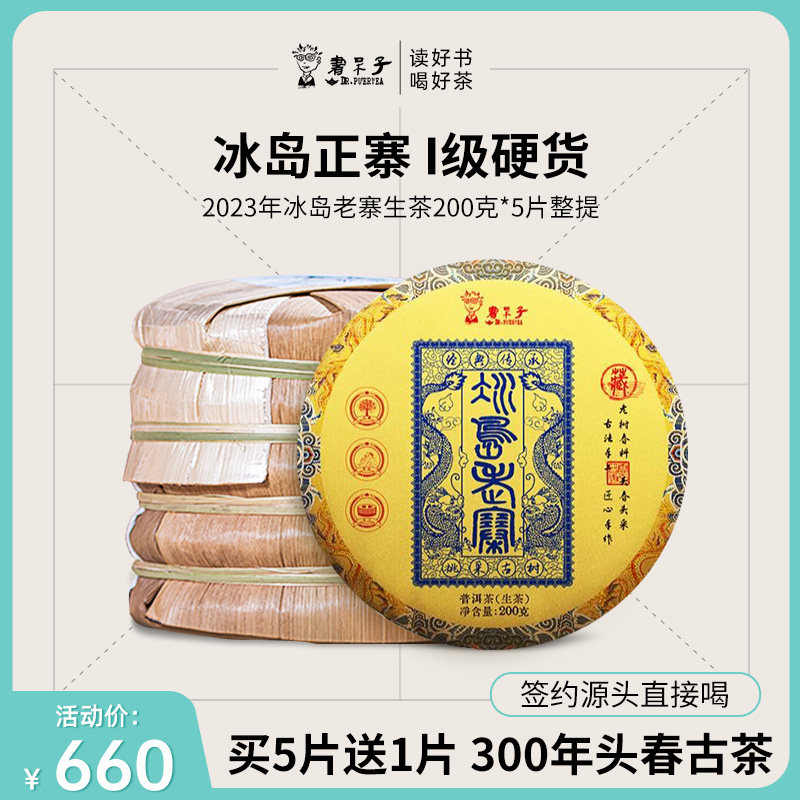 书呆子2023年春茶冰岛老寨普洱生茶书呆子茶叶200g*5片整提笋壳装