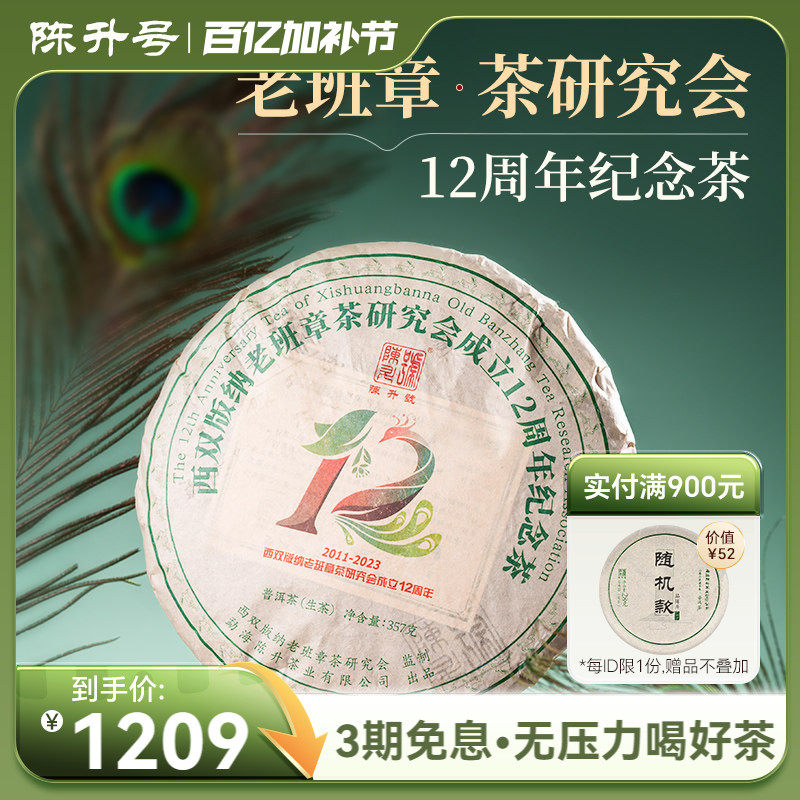 2023年陈升号老班章12周年茶研究会纪念饼357g普洱茶生茶饼茶茶叶