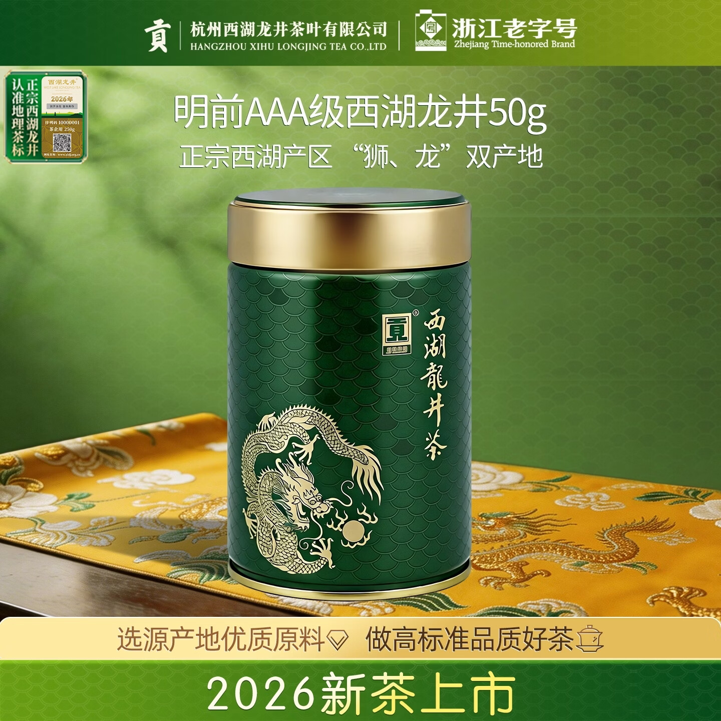 贡牌2026新茶上市 绿茶龙罐西湖龙井茶AAA特级50g明前罐装