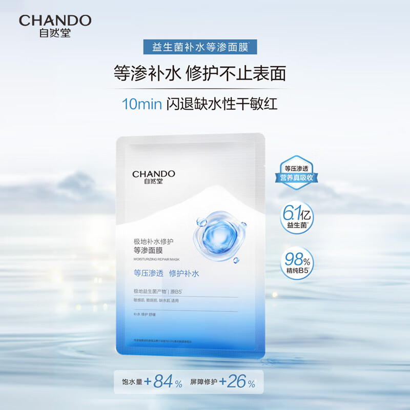 自然堂圣诞礼物【屈臣氏】极地补水修护等渗面膜28mL×10片