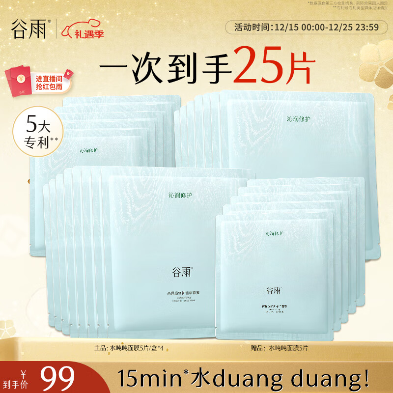 谷雨水吨吨高保湿面膜5片/盒*4水润舒缓补水修护贴片面膜护肤品