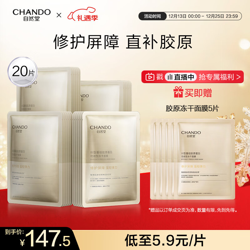 自然堂冻干胶原面膜20片修护紧致抗皱敏肌可用直补胶原