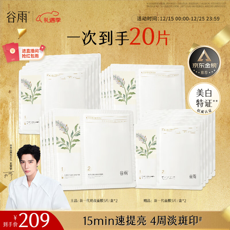 谷雨新一代奶皮面膜5片/盒*2美白面膜去黄暗沉修护补水保湿生日礼物女