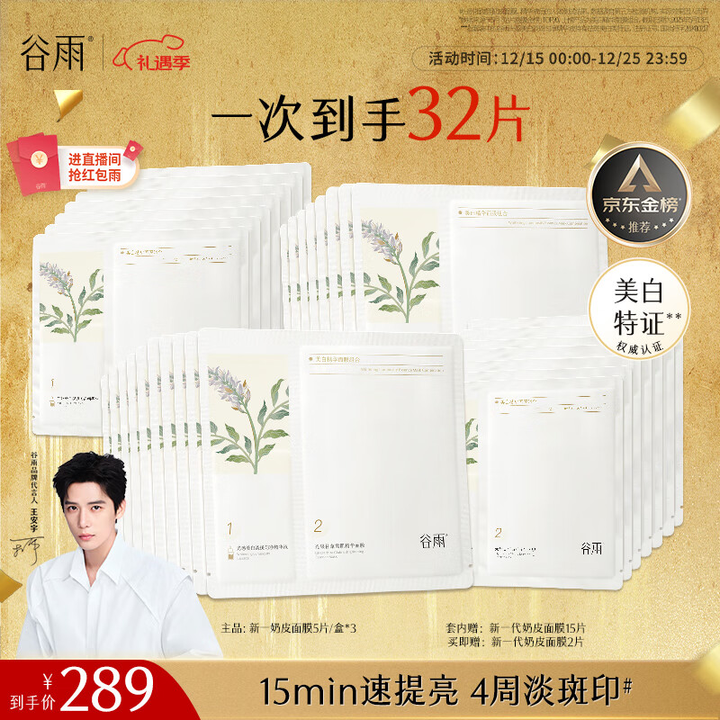 谷雨新一代奶皮面膜5片/盒*3美白面膜去黄暗沉修护补水保湿生日礼物